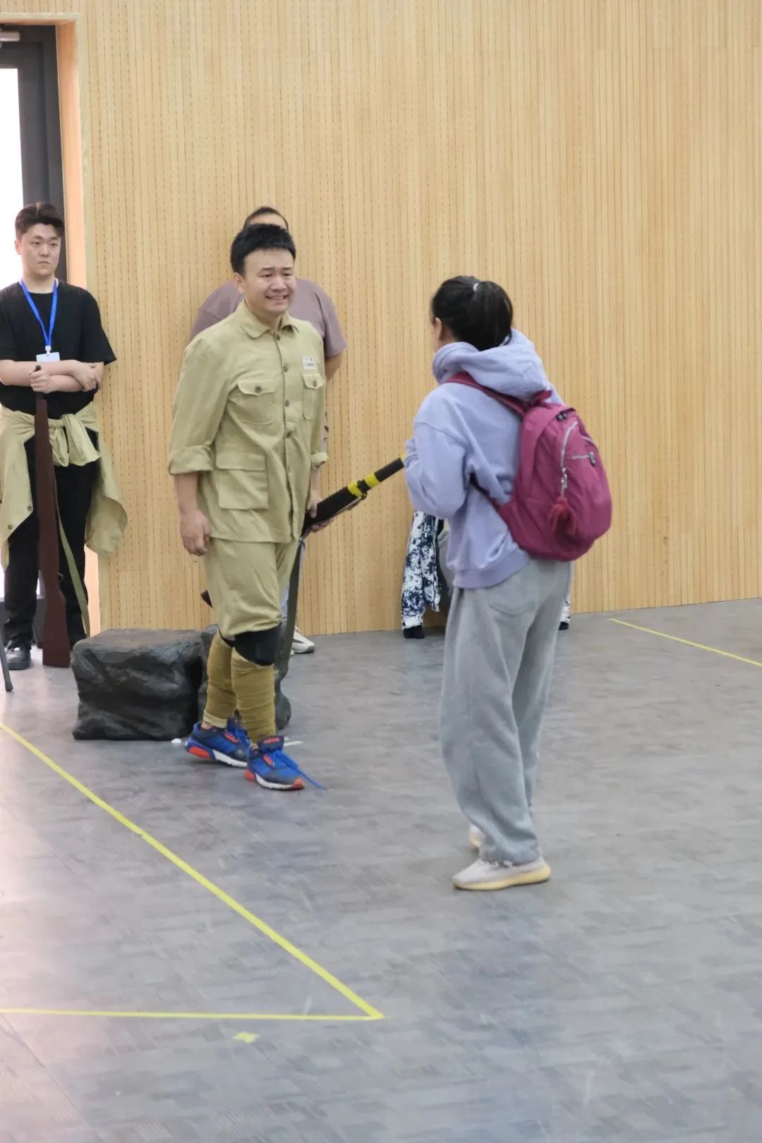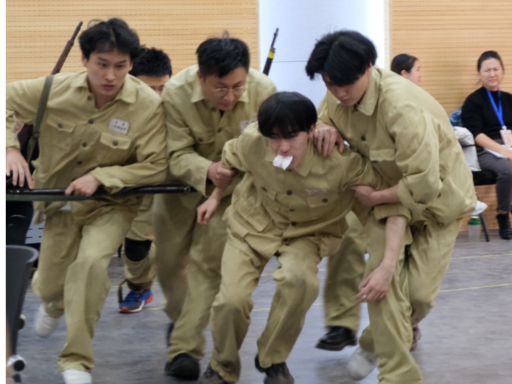 24日上午,學員們提前來到了排練廳,對前一天的排練內(nèi)容進行鞏固,開始熟悉這一天的排練內(nèi)容。舞蹈演員的加入使得排練內(nèi)容更加多樣化。在舞蹈片段排練中,談到舞蹈表演和歌劇表演的區(qū)別,王冀原導演說,“歌劇表演要有人物,要明確表演任務,是內(nèi)心中流淌出肢體的美,而不是簡單的臉譜式的美。內(nèi)心中要有明確的行動線、情感線。”在戲劇片段排練中,王冀原導演與李聰導演幫助演員們細致地分析每一句臺詞下的深層含義,并提到:“表演不能把內(nèi)容局限在白紙黑字上面。規(guī)定情境是死的,但詞是活的”,從而引導演員們深入挖掘故事情節(jié),更好地塑造角色性格。