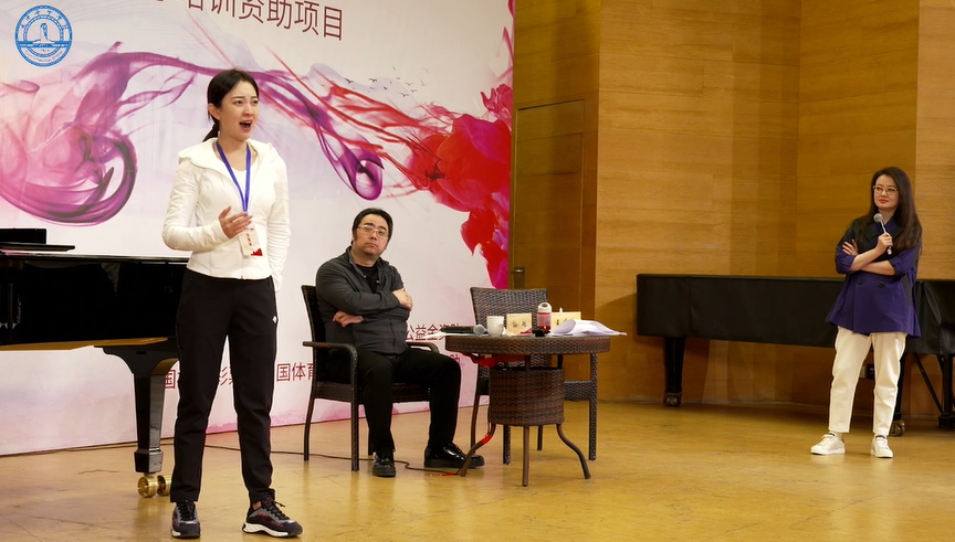 王慶爽老師就“角色與情緒”這一話題與學員進行交流。她提到,演員要通過情景來塑造角色,人物的每一次情緒轉變都要在臺下不斷地進行揣摩。在談及角色的情緒變化設計時,她結合自身經歷,提出一是要有豐富的想象力,二是要兼具感性的表達和理性的思考。此外,她還著重強調,讀譜務必要做到“準確”二字。課程最后,王慶爽老師為學員們進行了演唱示范。兩位老師對學員們在課程上的態度以及表現出的專業水準做出積極評價,并希望大家不懈奮斗,為中國民族歌劇的繁榮發展作出積極貢獻。