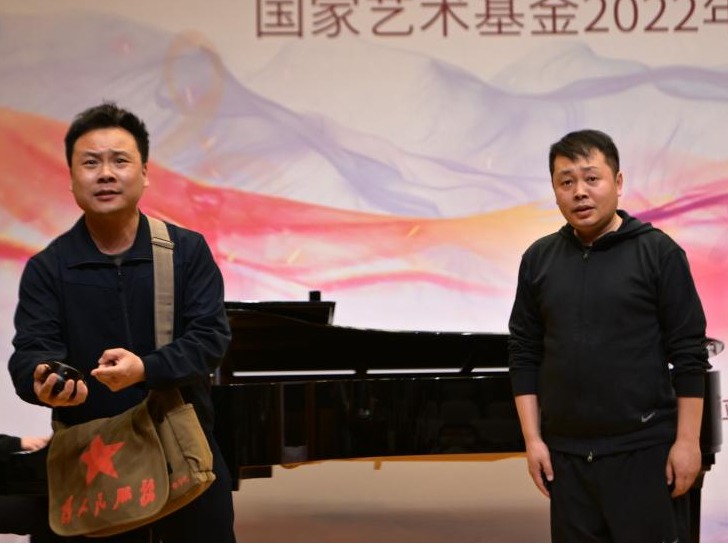 學員們也登臺進行民族歌劇片段展示。學員張劼倩演唱了《北風吹》;劉觀波、張劼倩演唱了《扎紅頭繩》;劉洺君演唱了《五洲人民齊歡笑》;張夏樂、孔建中演唱了《紫藤花》;丁金源、秦利偉演唱了《沖鋒槍擦了三四遍》;王小妹演唱了《看天下勞苦人民都解放》。針對每位學員的演唱,楊和平教授一一進行了點評,并從理論高度回答了大家的問題。