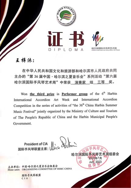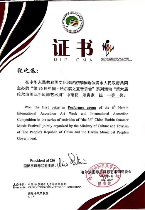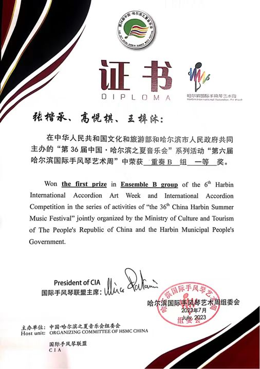 7月26至30日,第六屆哈爾濱國際手風琴藝術周成功舉辦。本屆“國際手風琴藝術周”是經文化和旅游部批準,列入第36屆哈爾濱之夏音樂會的重要項目,由哈爾濱市人民政府和聯合國教科文組織國際手風琴聯盟共同主辦,哈爾濱師范大學、哈爾濱市文化廣電和旅游局承辦。