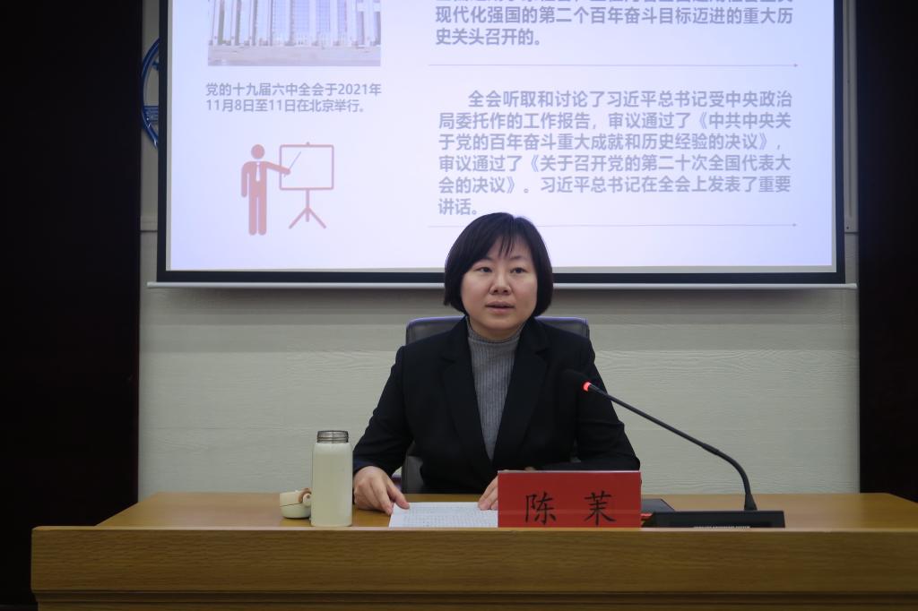 “學習貫徹全會精神,最重要的是要深刻理解和把握 ‘兩個確立’的決定性意義,真正把‘兩個維護’落到實處?!眻蟾鏁?,陳茉圍繞學習宣傳貫徹落實黨的十九屆六中全會精神,認真貫徹市委第十一次全會精神進行再動員。報告從深刻認識總結黨的百年奮斗重大成就和歷史經驗的重大意義,深刻認識黨的百年奮斗的初心使命和重大成就,深刻認識中國特色社會主義新時代的歷史性成就和歷史性變革,深刻認識黨的百年奮斗的歷史意義和歷史經驗,深刻認識以史為鑒、開創未來的重要要求,從黨的百年奮斗歷程中汲取智慧和力量等六個方面展開,闡述了全會的重大歷史意義和全會精神的核心要義,引領師生從黨的百年奮斗歷程中汲取前進的智慧和力量。