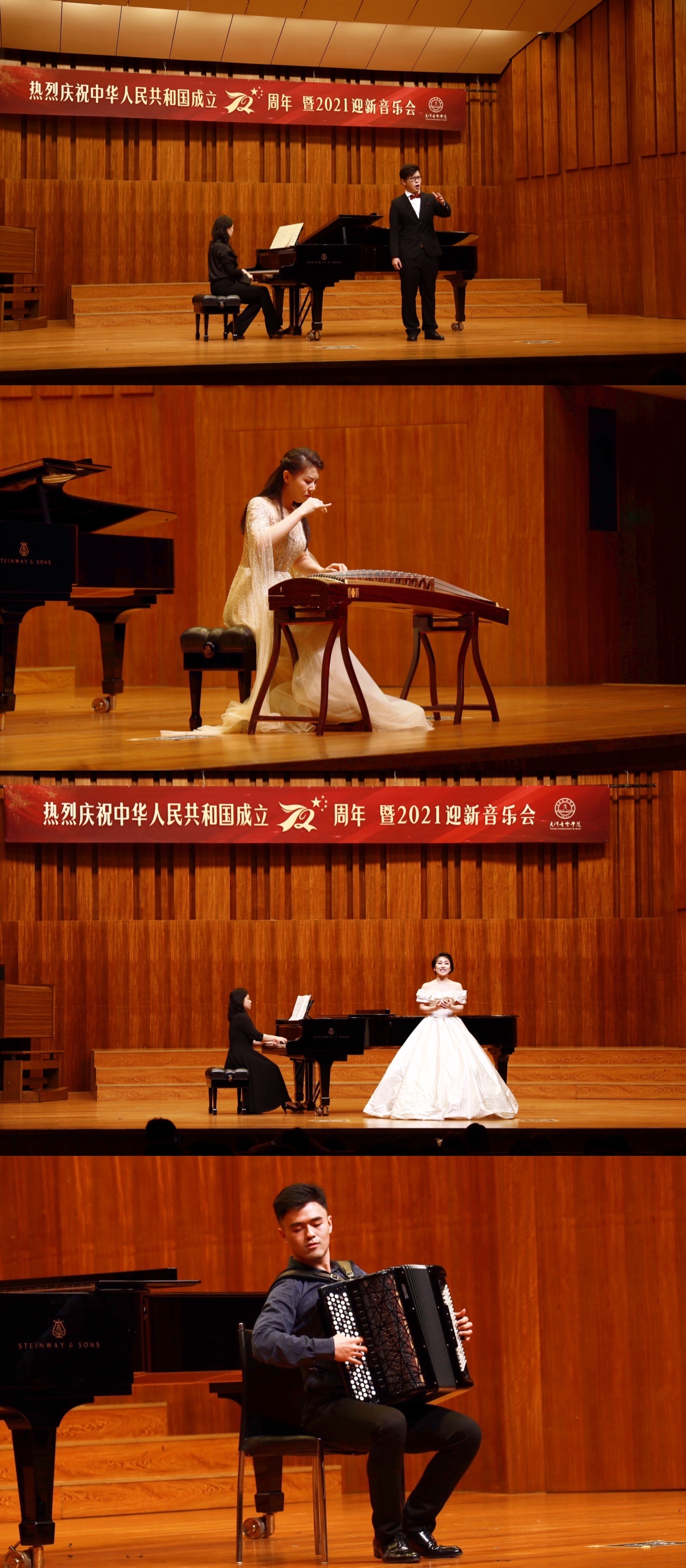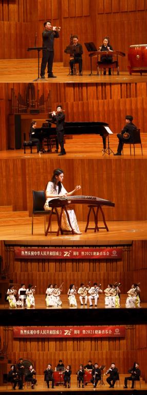 本站訊(編輯 李北 責任編輯 呂冬)9月30日,天津音樂學院舉行熱烈慶祝中華人民共和國成立72周年暨2021迎新音樂會。學院領導、相關系部負責人和2021級全體新生一同觀看了音樂會。