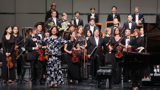 絲路愛樂樂團藝術總監由我院鋼琴系榮譽系主任、絲綢之路國際藝術交流中心國際藝術總監克勞迪婭?楊女士擔任。17日晚,絲綢之路國際藝術交流中心·歌劇廳座無虛席,作為藝術節的重量級演出之一的閉幕式音樂會精彩上演。音樂會由著名指揮家湯沐海先生指揮。絲路愛樂樂團奏響了斯洛伐克民間音樂作品《節日序曲》,歡快的旋律瞬間點燃了全場聽眾的激情。小提琴家湯蘇珊與絲路愛樂樂團合作,共同演奏了中國作品《苗嶺的早晨》。馬來西亞的樂曲《拉姆利的旋律》、柬埔寨的民間音樂《十一月的微風》《懷念中國》等精彩作品接連上演。鋼琴家克勞迪婭·楊女士演奏了肖邦的《平靜的行板與華麗的大波蘭舞曲》,美妙的音樂使觀眾瞬間感受到鋼琴的魅力。音樂會最后,大型主題交響曲《燈塔》的第三樂章“征途”激情奏響,這部作品是為慶祝中國共產黨成立100周年的特別委約作品,雄壯豪邁、強勁有力,將音樂會推向高潮。整場音樂會,時而氣勢磅礴、激昂澎湃,時而宛轉悠揚、溫潤如水,讓觀眾在跌宕起伏之間,暢游音樂藝術的海洋,現場氣氛熱烈,掌聲不絕于耳。人民網對閉幕式音樂會進行了全程直播,數千萬觀眾通過直播觀看音樂會。
