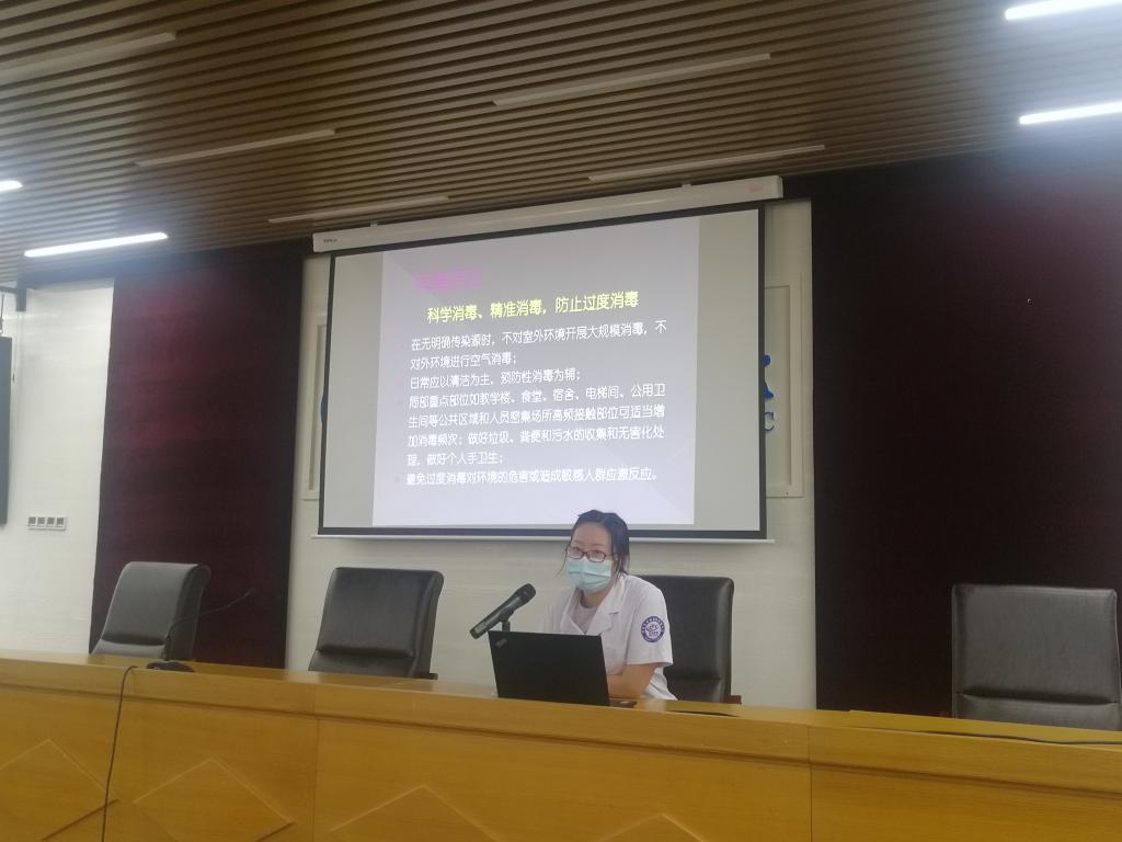 9月9日下午,我院疫情防控指揮部邀請河東區疾病預防控制中心的專家對黨政辦公室、學工部、安全工作部、基建后勤處應急處置和物業、宿管、食堂和保安人員開展了疫情防控培訓。