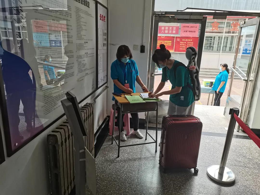 全院各系、各部門教職員工協調配合,為返校學生核驗“健康碼”“接種碼”、通訊大數據行程卡、出入證,檢測體溫、行李消毒、搬運行李、報到登記,全力為天音學子提供貼心便捷服務,送上暖心問候。