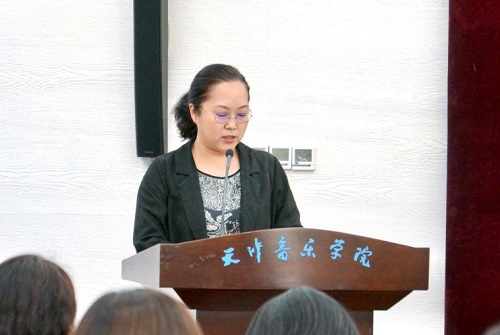 學工部專職心理教師文迪以《發(fā)揮專業(yè)院校特色深化家校共育亮點 探索音樂學院藝術化心理健康教育新模式》為題,就我院大學生心理健康教育工作情況進行匯報,介紹了我院緊密圍繞音樂藝術,突出育心與育德、育才、育人相統(tǒng)一,涵蓋教育教學、實踐活動、咨詢服務、預防干預“四位一體”育心體系,“1+2+3+4+5”、“心理健康+藝術”的音樂學院藝術化心理健康教育新模式。