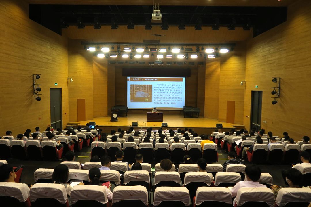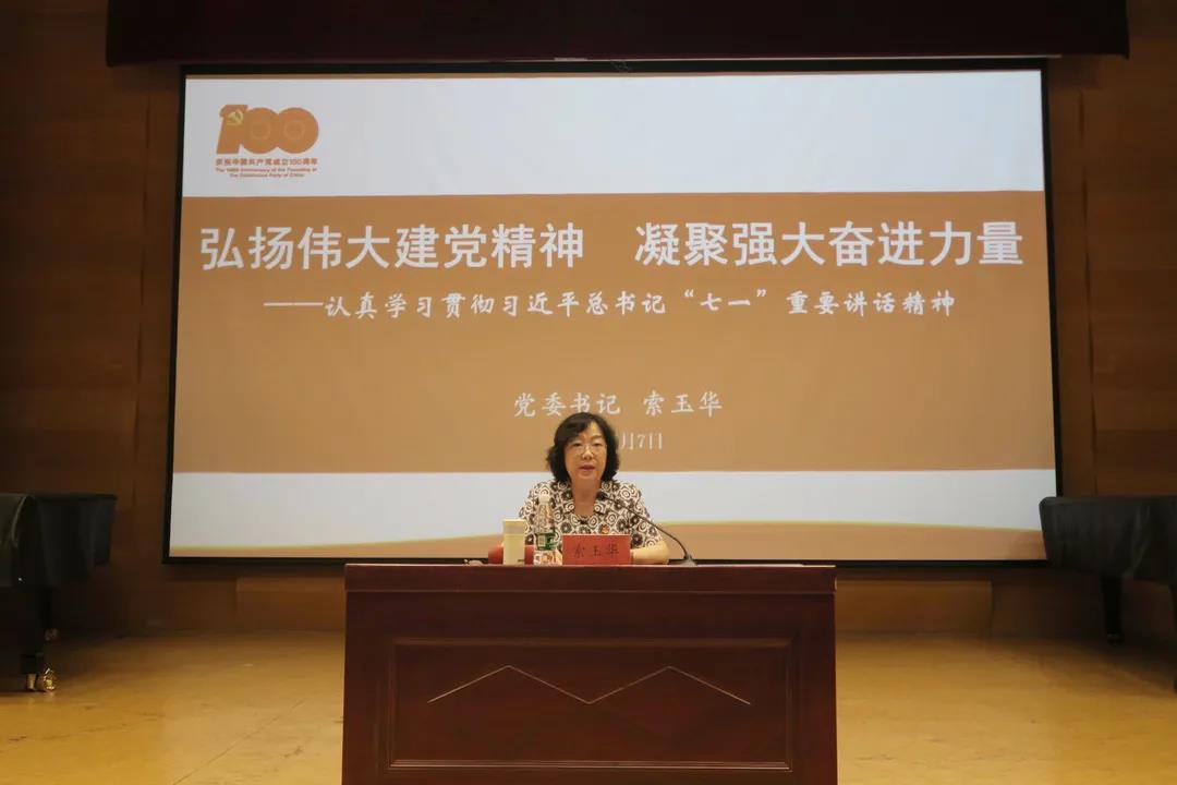 本站訊(編輯 張立杰 責(zé)任編輯 趙霞 攝影 李棟)按照學(xué)院黨委的統(tǒng)一部署,近期我院全面開展學(xué)習(xí)貫徹習(xí)近平總書記“七一”重要講話專題黨課。7月7日,黨委書記索玉華以《弘揚(yáng)偉大建黨精神 凝聚強(qiáng)大奮進(jìn)力量》為題,率先為黨員干部師生講授專題黨課。學(xué)院領(lǐng)導(dǎo)班子成員,市教育兩委巡回指導(dǎo)組成員出席黨課。各黨總支、直屬黨支部書記和黨員代表,機(jī)關(guān)全體黨員,索玉華書記所在支部、聯(lián)系單位、分管單位全體黨員等一同參加了黨課學(xué)習(xí)。專題黨課由黨委常委、宣傳部部長趙霞主持。