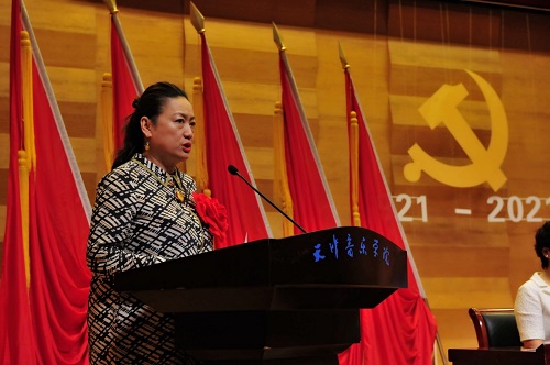 大會在莊嚴的國歌聲中開幕。黨委常委、組織部部長梁玫宣讀了榮獲“光榮在黨50年”名單和天津音樂學院關于表彰優秀共產黨員、優秀黨務工作者和先進基層黨組織的決定、關于命名2020-2021年度天津音樂學院“創最佳黨日”優秀活動的通知。黨委書記索玉華為“光榮在黨50年”老黨員代表頒發紀念章,黨委常委為受表彰的優秀共產黨員、優秀黨務工作者和先進基層黨組織以及獲“創最佳黨日”優秀活動的黨支部頒獎。