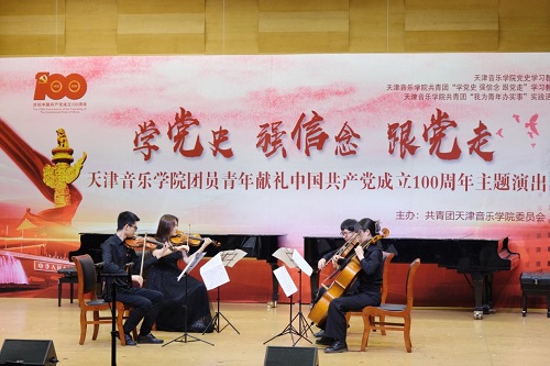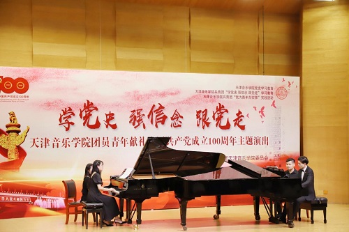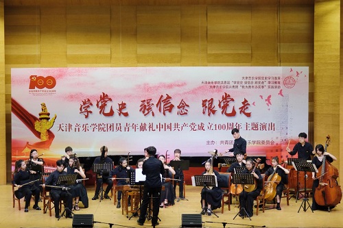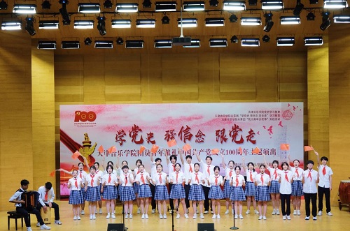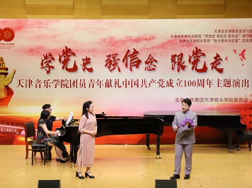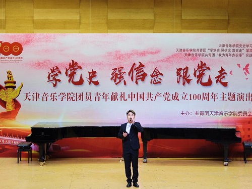 本站訊(編輯 楊夢媛 攝影 王博文 周琪雅 責任編輯 朱誠)6月16日下午,一場別開生面的主題演出在圖書信息樓學術報告廳舉行。全院各系和附中團員青年以“學黨史強信念 跟黨走”為主題,奏響廣大天音青年一心向黨、青春激揚的時代主旋律,獻禮中國共產黨成立100周年。院黨委書記索玉華,院黨委副書記陳茉,院黨委常委、市紀委監委駐天津音樂學院紀檢監察組組長李?君出席演出活動。