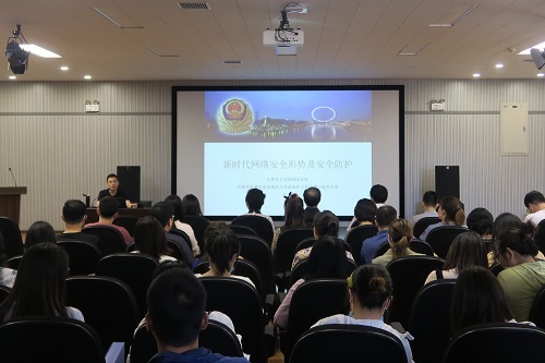 5月28日,天津市公安局網安總隊一支隊副支隊長蘇圣魁作《新時代網絡安全形勢及安全防護》專題講座。講座中,蘇圣魁結合網絡安全事件重點分析了當前網絡安全工作面臨的形勢,講解了《網絡安全法》中有關網絡安全等級保護、關鍵信息基礎設施防護等相關法律條文,講述了網絡安全防護的基本常識,引導教職工不斷提升網絡安全防范意識。