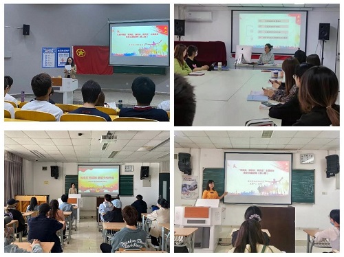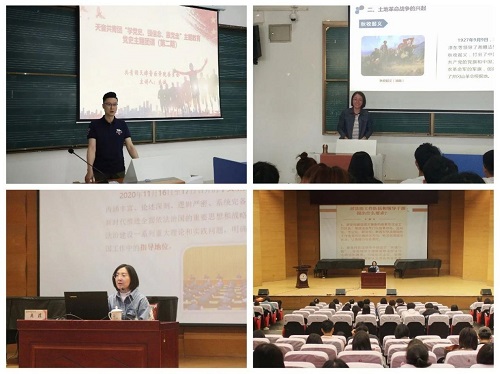 圍繞黨史學習教育重點,天音青年講師團在院學生會、院研究生會、習近平新時代中國特色社會主義思想青年學習會和卓越團校2021年入黨申請人春季培訓班、“青年馬克思主義培養工程”暨第九期大學生骨干培訓班中率先開講,開啟序幕。3月起,院團委書記班子成員深入院級學生組織和理論學習社團,以《傳承紅色精神砥礪無悔青春》《傳承五四精神 開啟青春奮斗新征程》為主題,示范帶動黨史學習教育宣講深入開展。教工團總支書記、思政教學中心教師吳菲為入黨申請人和大學生骨干做題為《從百年黨史看法治中國》的專題講座。根據宣講對象特點開展分眾化、精準化宣講,有的放矢進行宣傳闡釋,切實提高了黨史學習教育宣講的針對性、實效性和感召力。