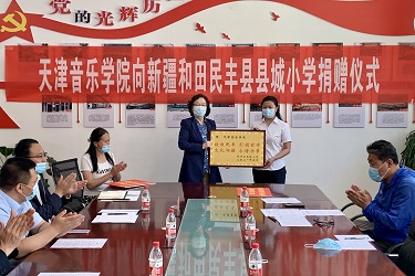 在天津音樂學院捐贈鋼琴儀式上,和田地委教育工委副書記、地區(qū)教育局黨組書記馬朝霞介紹了天津援疆教育項目實施情況,對我院師生的支教工作給予高度評價,對學院捐贈鋼琴表示感謝。索玉華指出,在迎慶建黨百年之際,我院師生來到和田地區(qū)開展支教工作,既是踐行習近平新時代中國特色社會主義思想、投身脫貧攻堅與鄉(xiāng)村振興戰(zhàn)略有效銜接的社會實踐,又是“我為群眾辦實事”的生動體現(xiàn),希望通過天音師生共同努力,進一步助力和田地區(qū)教育文化事業(yè)發(fā)展。天津援疆前指總指揮徐暉向我院領導的到來表示歡迎,希望加強與學院的深度合作,切實把以習近平同志為核心的黨中央親切關懷、天津人民無私支援轉化為推進新疆教育文化發(fā)展的具體行動。