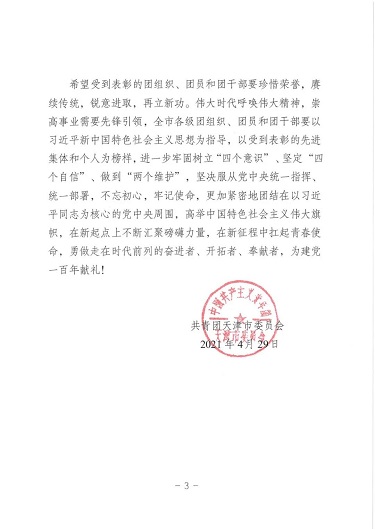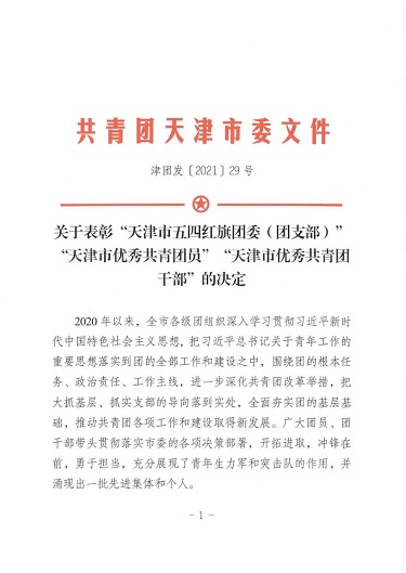 本站訊(編輯 楊夢媛 責任編輯 朱誠)日前,團市委下發《關于表彰“天津市五四紅旗團委(團支部)”“天津市優秀共青團員”“天津市優秀共青團干部”的決定》,經基層申報、學院推薦、市級評審,我院民族聲樂系團總支獲“天津市五四紅旗團總支”稱號,舞蹈系2018級本科生蘇珂獲“天津市優秀共青團員”稱號。