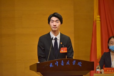 大會秘書長朱誠代表共青團天津音樂學院第五屆委員會作題為《高舉團旗跟黨走 銳意進取新時代 團結帶領團員青年為建成國際化、高水平音樂學院貢獻力量》的工作報告。報告客觀回顧和總結了自第五次團代會以來我院共青團工作的發展和取得的成績,提出了今后一個時期,我院共青團工作的指導思想和總體要求,明確了“五個著力點”和“五大重點任務”。