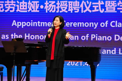 克勞迪婭·楊表示,受聘天津音樂學院擔任鋼琴系榮譽系主任后將發揮自身專業優勢,借鑒國際先進教學理念,加強系內專業課程建設,建立與國際接軌的專業課程體系,帶動鋼琴專業整體水平提升,與國際接軌。