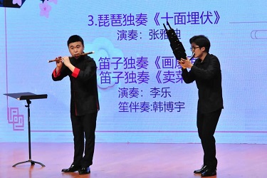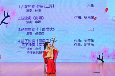 授聘儀式開始前舉行了精彩的民樂展演。我院民樂系優秀青年教師、全國大賽金獎獲得者孫瀛、申婷、張雅迪、李樂分別演奏了古琴獨奏《梅花三弄》、阮獨奏《劍器》、琵琶獨奏《十面埋伏》、笛子獨奏《畫扇面》《賣菜》等不同風格的中國民樂作品,展示了扎實的專業功底與精湛的演出技藝,讓觀眾充分領略到中國傳統音樂的獨特魅力,將現場的氣氛推向高潮。