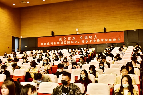 本站訊(編輯 梅麗克 攝影 張昊 趙瑩 責任編輯 郭妍)4月7日下午,“天津音樂學院大學生就業創業指導服務季”開幕式暨就業觀教育主題講座在圖書信息樓報告廳舉行。學院黨委書記索玉華、黨委副書記董洪霞出席本次活動,各系專兼職輔導員、各系2021屆畢業生代表參加了本次活動。開幕式由學工部部長郭妍主持。