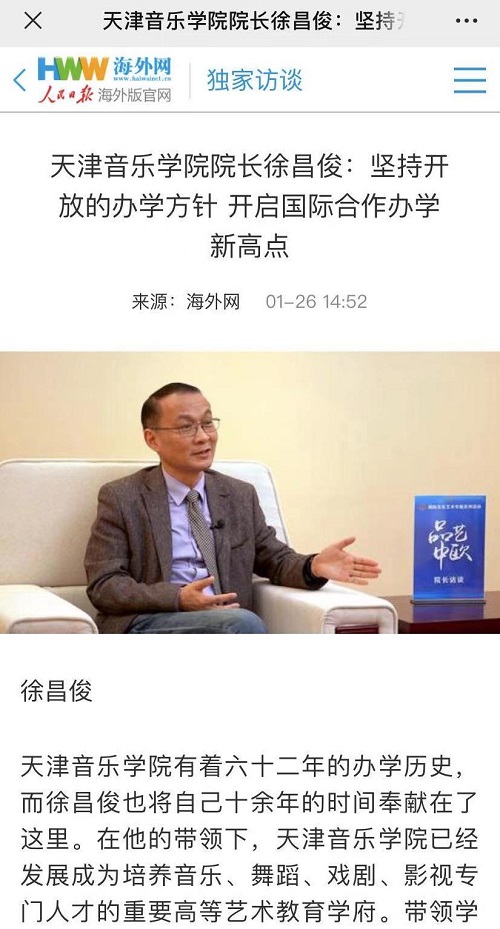 本站訊(編輯 李彤 責任編輯 趙霞)日前,人民日報海外網專訪我院院長徐昌俊。訪談中,徐昌俊院長結合音樂創作、辦學治校實踐,分享了自己的經驗與體會。