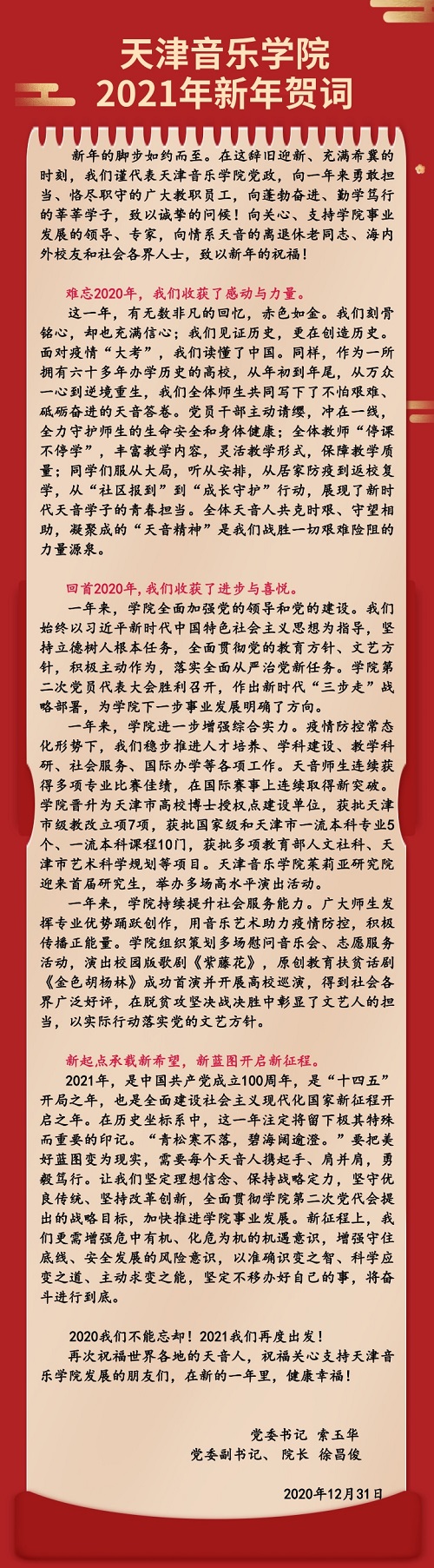 天津音樂(lè)學(xué)院2021年新年賀詞