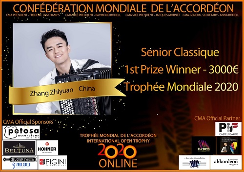 由于疫情原因,今年此兩項賽事均采用線上競賽的方式進行。繼今年九月獲得第45屆意大利卡薩菲達多比賽演奏家組第三名之后,張之遠同學再次獲得此兩項手風琴專業國際頂級賽事名次,在國際舞臺進一步展示了我院手風琴專業的教學成果。