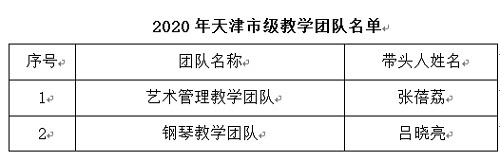 本站訊(編輯 黃超 責任編輯 劉文平)近日,根據《市教委關于公布2020年天津市級教學團隊和第十四屆天津市高等學校教學名師獎評審結果的通知》(津教高函[2020]49號),我院藝術管理教學團隊和鋼琴教學團隊榮獲2020年天津市級教學團隊稱號。同時,方建軍教授榮獲“第十四屆天津市高等學校教學名師獎”。