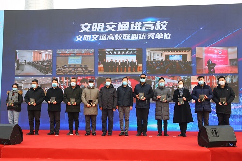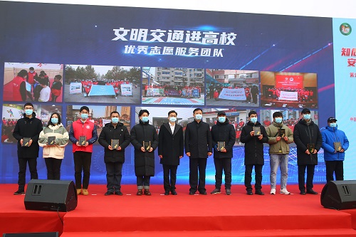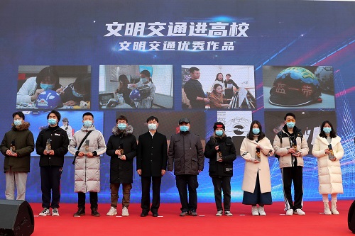 本站訊(編輯 朱旭 攝影 朱旭 責任編輯 朱誠)12月2日是第九個“全國交通安全日”,全市“文明交通進高校”活動頒獎儀式在天津站前廣場舉行。副市長、市公安局局長董家祿出席。我院獲“文明交通高校聯盟優秀單位”,天津音樂學院大學生志愿服務團隊獲“優秀志愿服務團隊”,學生原創歌曲《守護》獲“文明交通優秀作品”。