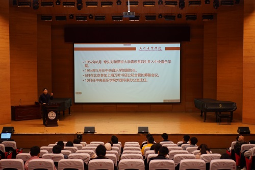 講座中,靳學東講述了老院長繆天瑞教授一生踐行高尚師德的事跡。繆天瑞先生作為我國著名音樂辭書編纂家、律學家、翻譯家、教育家,他登壇施教,翻譯教材,編寫曲例,編纂辭書,不僅是中國音樂教育事業(yè)的開拓者之一,也是中國律學基礎理論的奠基人。他的一生幾乎全部奉獻給了國家音樂文化事業(yè)。講座通過講述繆先生的四段人生歷程,窺探了先生歷經(jīng)風雨波折而堅定為國家音樂教育事業(yè)奮不顧身、鞠躬盡瘁的師德風范。
