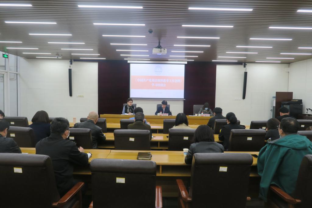 本站訊(編輯 張麗娜 責任編輯 梁玫 攝影 李棟 )10月31日下午,我院召開了《中國共產黨基層組織選舉工作條例》學習培訓會和2020年基層黨建工作推動會。黨委書記索玉華、黨委副書記董洪霞出席會議,各黨總支、直屬黨支部書記參加了會議。
