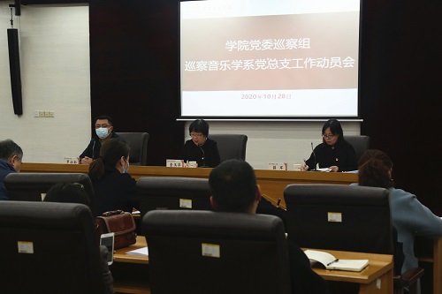 本站訊(編輯 陳晨 責任編輯 薛軍 攝影 朱夢涵)10月28日下午,學院黨委巡察組巡察音樂學系黨總支工作動員會在圖書信息樓學術三廳召開。黨委書記、巡察工作領導小組組長索玉華出席會議并講話。巡察工作領導小組成員、黨委巡察工作辦公室副主任、巡察組組長羅亦南,巡察組全體成員、音樂學系全體教職工和學生黨員參加會議。會議由音樂學系黨總支書記薛軍主持。