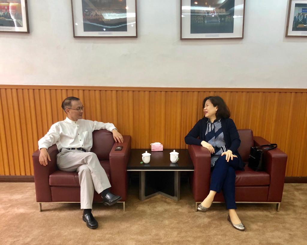 會見中,徐昌俊首先代表天津音樂學院對克勞迪婭·楊夫婦的到訪表示歡迎,克勞迪婭·楊夫婦感謝天津音樂學院的熱情接待,并就國際交流合作、人才培養等方面深入交換意見。