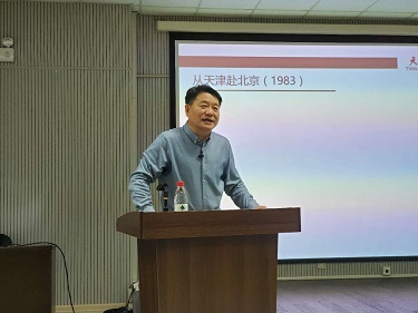 靳學東教授以習近平總書記在第36個教師節對廣大教師和教育工作者的寄語“不忘立德樹人初心,牢記為黨育人、為國育才使命,不斷作出新的更大貢獻”作為開篇,展開講述了老院長繆天瑞教授一生踐行高尚師德的事跡。