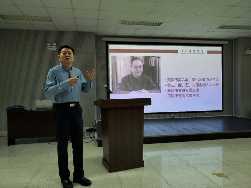 講座最后,靳學東教授播放了天津音樂學院建院50周年時繆天瑞先生向學院的致辭,在這位百歲老人滿懷感念的致辭影像中看到了他那一生中憧憬光明、心系祖國、恪盡職守、忍辱負重、以德報怨、淡泊名利、傾心學術的精神信念。