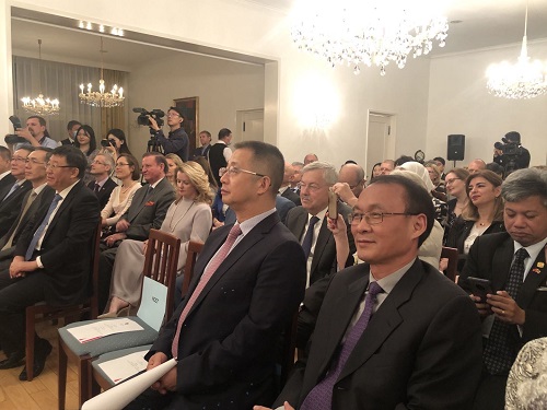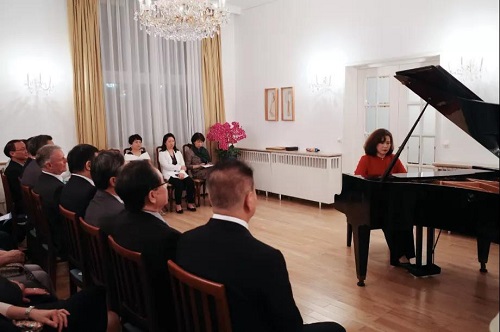 頒獎典禮結束后,克勞迪婭教授為來賓帶來了莫扎特和舒伯特的作品。返場的馬來西亞作品《顫動的心靈》及中國作品《彩云追月》的演奏,讓大家感受到音樂在文化融合方面的無窮魅力。最后,克勞迪婭女士演奏了奧地利經典旋律《雪絨花》,全場嘉賓跟隨曲調輕聲合唱,將音樂會的氛圍推向高潮。中央電視臺、中國日報、中國國際廣播電臺和奧地利國家電視臺等數家媒體對頒獎進行現場報道。