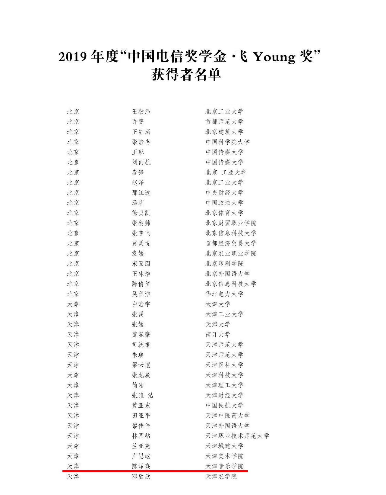 本站訊(編輯 王金灤 責(zé)任編輯 朱誠(chéng) 攝影 陳丹妮)日前,由共青團(tuán)中央、中國(guó)電信集團(tuán)公司、全國(guó)學(xué)聯(lián)共同開(kāi)展的2019年“中國(guó)電信獎(jiǎng)學(xué)金”評(píng)選活動(dòng)落下帷幕。經(jīng)院、市兩級(jí)推薦、全國(guó)評(píng)審及結(jié)果公示,我院藝術(shù)管理系陳澤熹同學(xué)榮獲“中國(guó)電信獎(jiǎng)學(xué)金?飛Young獎(jiǎng)”。