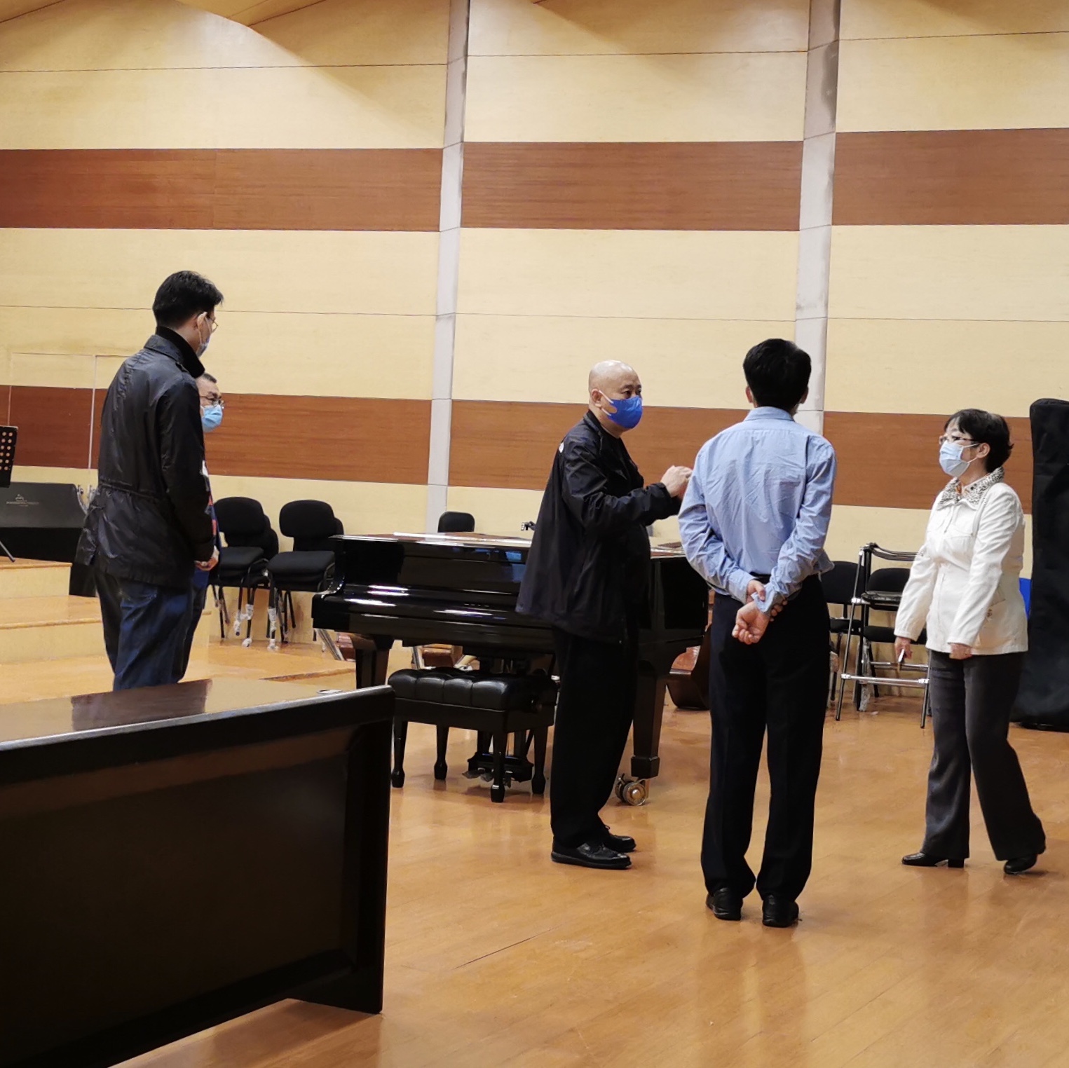 本站訊(編輯 畢毅強 責任編輯 劉濤)5月7日上午,為切實做好疫情防控工作,我院黨委書記索玉華、副院長唐悅奇一行深入南北校區各教學系部,調研檢查疫情防控和復課準備情況,黨政辦公室、校園管理處、安全工作部等有關部門負責人陪同調研。索玉華一行走訪了排練廳、宿舍、教室、圖書館、食堂、浴室等區域,詳細了解教學環境消殺、防疫物資儲備、食堂備餐就餐等情況,并聽取了有關系部防疫復學工作匯報。