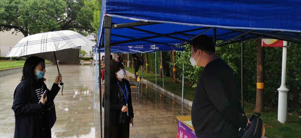 本站訊(編輯 王寧 責任編輯 梁玫 攝影 梁玫)5月8日下午,院黨委副書記董洪霞、駐天津音樂學院紀檢監察組組長趙強冒雨督導檢查畢業年級返校及防疫工作籌備進展情況。黨政辦公室、學工部、校園管理處、黨委安全工作部等相關部門負責同志陪同檢查。