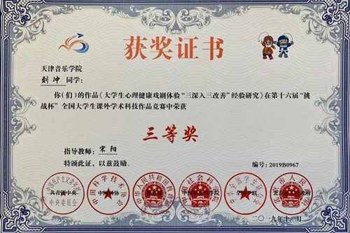 本站訊(編輯 王金灤 責任編輯 朱誠 攝影 邵雷)日前,由共青團中央、中國科協、教育部、中國社會科學院、全國學聯、北京市人民政府聯合舉辦,北京航空航天大學承辦的第十六屆“挑戰杯”全國大學生課外學術科技作品競賽決賽結果揭曉,我院學生作品《大學生心理健康戲劇體驗“三深入三改善”經驗研究》作為市級“挑戰杯”競賽特等獎項目,從眾多高校中脫穎而出,榮獲全國三等獎,這是我院時隔四年匠心打磨,再度摘得“挑戰杯”賽事國家級獎項。