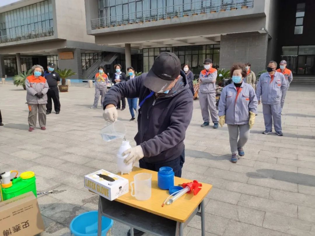 4月7日,按照我院預防性消毒工作方案,指揮部組織物業、保安、宿管人員開展預防性消毒實戰演練。疫情防控組工作人員詳細講解了消毒液的配備、消毒器具的使用、個人防護措施等方面的內容,并現場組織物業、保安、宿管人員分別進行了實際操作,針對操作過程中的重要環節和注意事項進行了講解和指導。