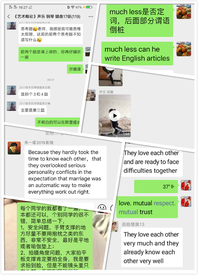 基礎課部黨支部將“停課不停教不停學”落到實處,組織各教研室認真制定網絡教學方案、搭建線上教學平臺、精心備課、按時開課、認真上課,用實際行動踐行著人民教師的初心。線上開學之前,基礎課部教師在線上就網絡教學模式展開討論,最終確定以微信為主要平臺,按照原有教學班分別建立班級授課微信群平臺,同時制定了管理規定以保證正常的線上教學秩序。開課前,老師們同心協作,開展線上集體備課、資源分享、教學演練,互幫互助、相互鼓勵、確保線上教學工作平穩開展。線上開學后,老師們將精心準備的線上教學內容在微信教學平臺發布,認真解答學生的提問,力求給學生帶來最好的學習體驗,保障每一節課的教學效果。課后老師們及時交流線上授課經驗,并不斷調整授課的內容和改進授課的方式。