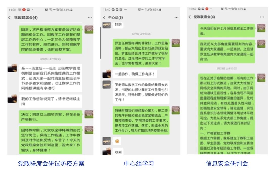 系黨支部書記作為第一責任人,與系主任共同及時研判科學(xué)規(guī)劃,嚴謹制定工作方案。在充分交流基礎(chǔ)上,以支委會、黨政聯(lián)席會、黨員大會、中心組學(xué)習(xí)等形式召開了多次會議,保障了各項工作的規(guī)范嚴謹推進。期間制定了《手風(fēng)琴鍵盤系新冠肺炎疫情防控工作實施方案》《2019—2020學(xué)年第二學(xué)期手風(fēng)琴鍵盤系開學(xué)注意事項》《手風(fēng)琴鍵盤系網(wǎng)絡(luò)教學(xué)管理辦法》《手風(fēng)琴鍵盤系黨支部新冠肺炎疫情防控黨員小分隊工作方案》等,將各項工作落實、落細。