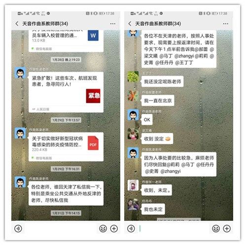 作曲系的黨員干部教師早早便開啟了“云辦公”模式。作為輔導員,史菁同志通過班級微信群、短信等形式,發動學生干部,不漏一人,與每一位學生及家長取得聯系,統計學生居住地區、身體狀況,告之學院防疫工作要點,叮囑提醒學生及家長注意居家防護,勿提前返校。前期經過排查,史菁同志得知系里一名16級學生及家人現居住于湖北宜昌,此后她多次與該名學生進行溝通,了解其和家人健康狀況,鼓勵學生積極面對,做好個人防護。