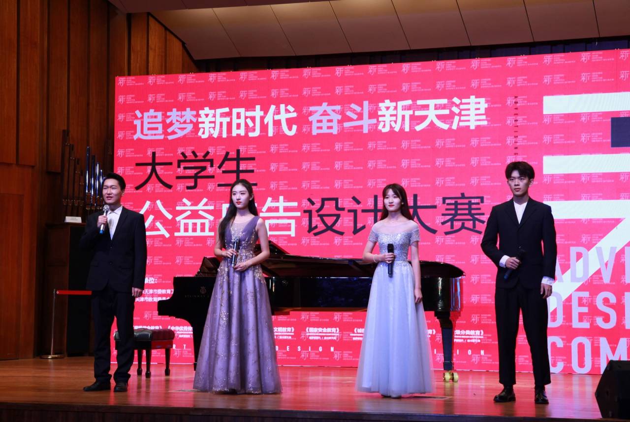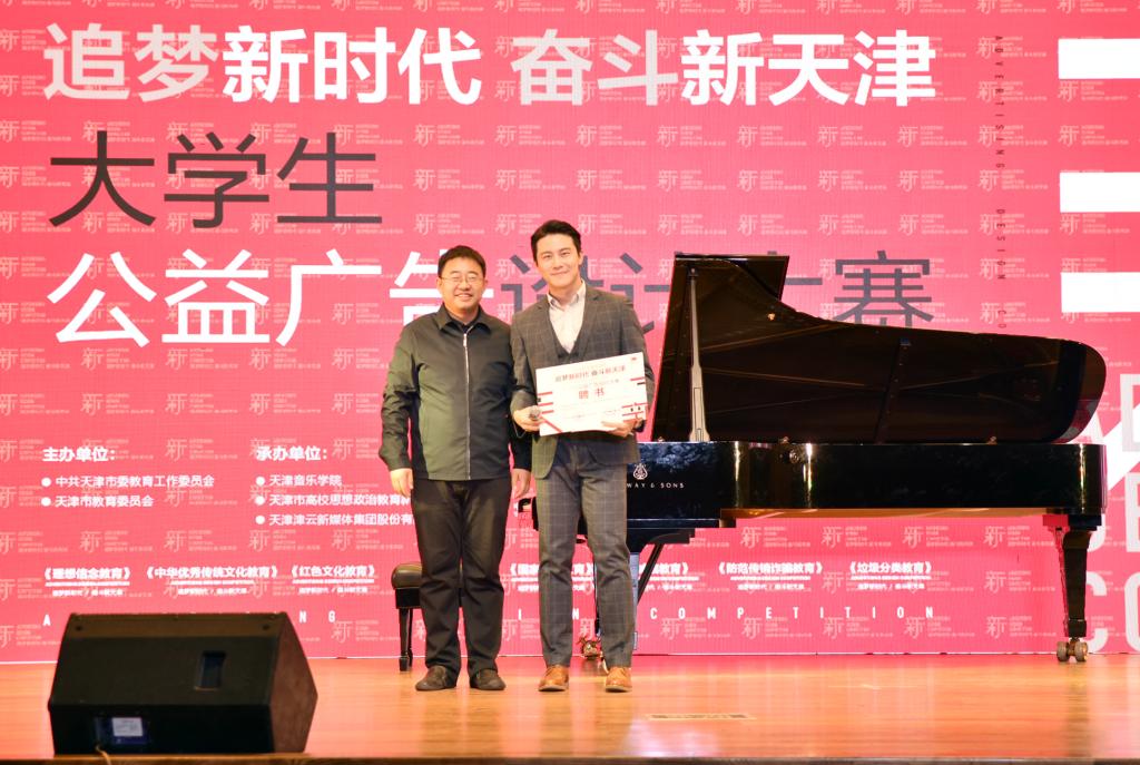 頒獎典禮上,院黨委副書記董洪霞、天津市教委學(xué)生思想教育與管理處副處長楊明、天津教育報刊社社長劉延軍、天津市環(huán)境保護(hù)宣傳教育中心主任、研究員郝未寧為獲得一等獎的作品作者頒獎。楊明還為天津音樂廣播電臺主持人王野頒授“天津市高校公益廣告設(shè)計大賽形象大使”聘書,王野表示,看了大學(xué)生們的精彩作品,自己也深受感染,希望能為我市的公益事業(yè)盡自己的一份心力!