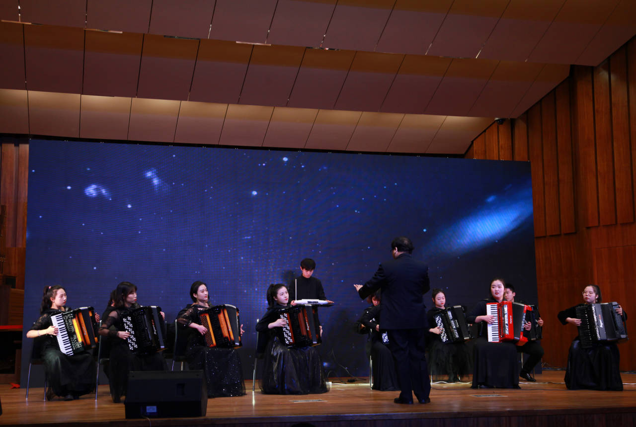 我院師生根據(jù)本次大賽理想信念教育、紅色文化教育等不同主題,獻(xiàn)上了形式多樣的精彩演出。燭光合唱團(tuán)帶來合唱《青春舞曲》,展示了天音學(xué)子的青春風(fēng)貌;劉芳蕾帶來小提琴獨奏《花兒為什么這樣紅》,教師王展展帶來嗩吶獨奏《百鳥朝鳳》、舞蹈《相和歌》展現(xiàn)出中華優(yōu)秀傳統(tǒng)文化的獨特魅力;馬顯晨的鋼琴獨奏《山丹丹開花紅艷艷》,教師王雷獨唱《多情的土地》,趙啟碩、王智勇、胡冰、李夢雅的朗誦《青春中國》,李清資教授帶來的獨唱《唱支山歌給黨聽》用飽滿的激情表達(dá)出我院師生對祖國的熱愛之情;我院星空電子交響樂團(tuán)帶來的特雷門琴演奏《旋轉(zhuǎn)的宇宙》,讓在場觀眾感受到世界上唯一不需要身體接觸的電子樂器的神奇。