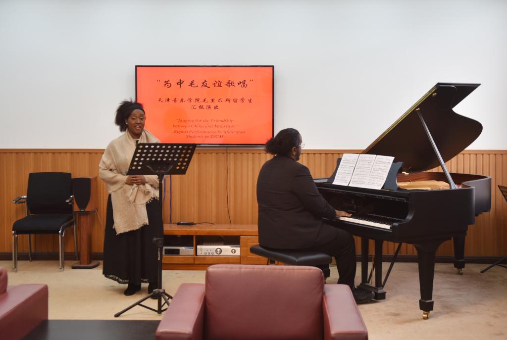 本站訊(編輯 于欣霏 責任編輯 孫佳怡 攝影 孫玥)11月29日下午,“為中毛友誼歌唱——天津音樂學院毛里求斯學生匯報音樂會”在我院國際交流中心國際會客廳舉行。聲樂系主任馬梅、聲樂系書記吳茜、現代系主任劉柱喜、國際交流中心主任孫佳怡出席音樂會。