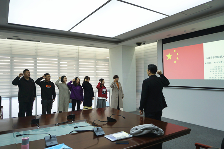 2019年新入職的7位教職工在教師工作部副部長李穎的領誓下,面向國旗進行了莊嚴的入職宣誓。