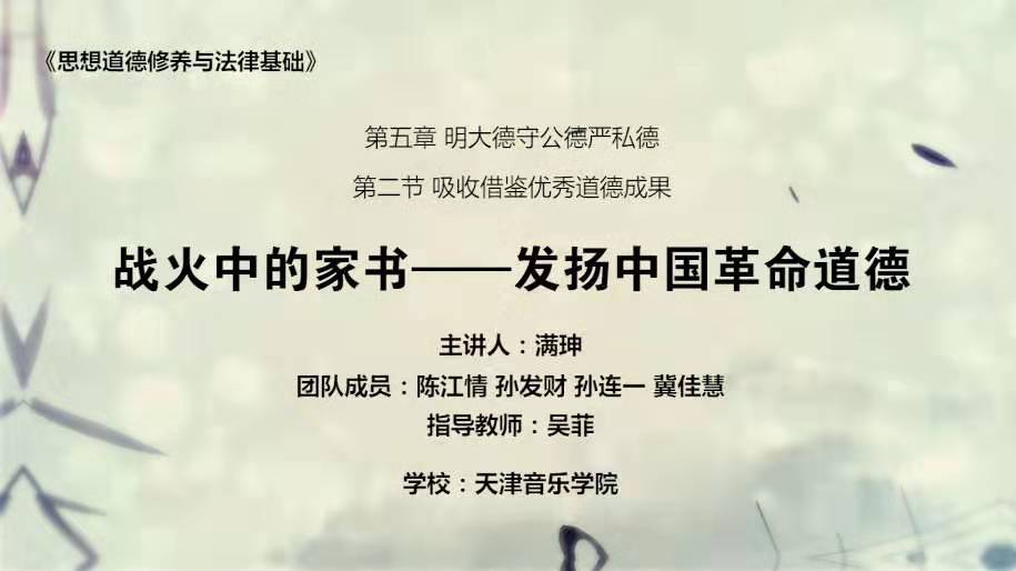 本站訊(編輯 吳菲 責(zé)任編輯 尚麗亭 攝影 王瀟)10月26日,由我院思政教學(xué)中心教師吳菲指導(dǎo),戲劇影視系2017級本科生滿珅、陳江情、孫發(fā)財、孫連一、冀佳慧團(tuán)隊完成的《戰(zhàn)火中的家書——發(fā)揚(yáng)中國革命道德》一課,在“砥礪前行七十載·奮斗成就中國夢”——第三屆全國高校大學(xué)生講思政課公開課展示活動中喜獲二等獎,為該賽事舉辦三年來全國藝術(shù)院校最好成績。