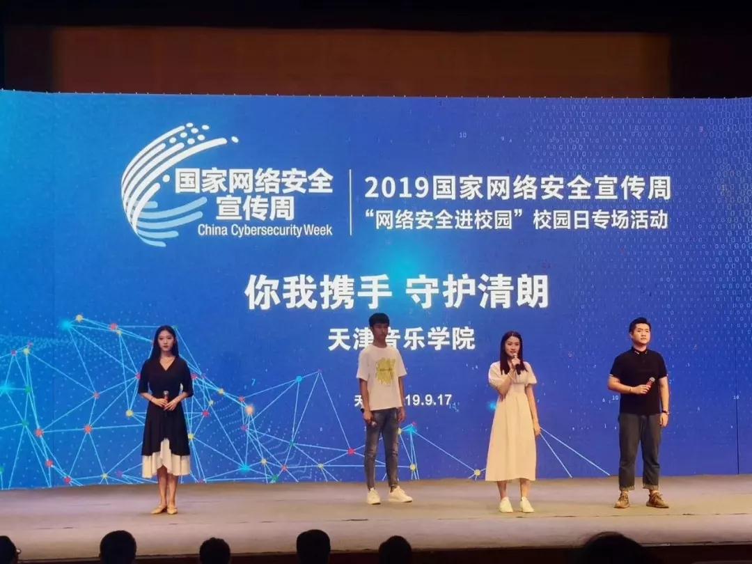 其中,9月17日的網安周校園日“網絡安全進校園”活動,由中央網信辦、教育部指導,天津市委網信辦、天津市教育工委主辦,天津大學承辦,我院與天津外國語大學、北辰區委網信辦、騰訊公司協辦。活動現場,我院學生精心準備了文藝表演。學院黨委宣傳部精心策劃、戲劇影視系學生傾情演繹了網絡安全主題朗誦《你我攜手 守護清朗》,受到組委會和現場觀眾的好評。