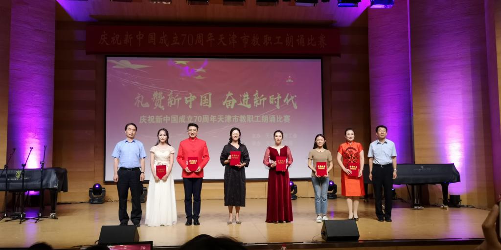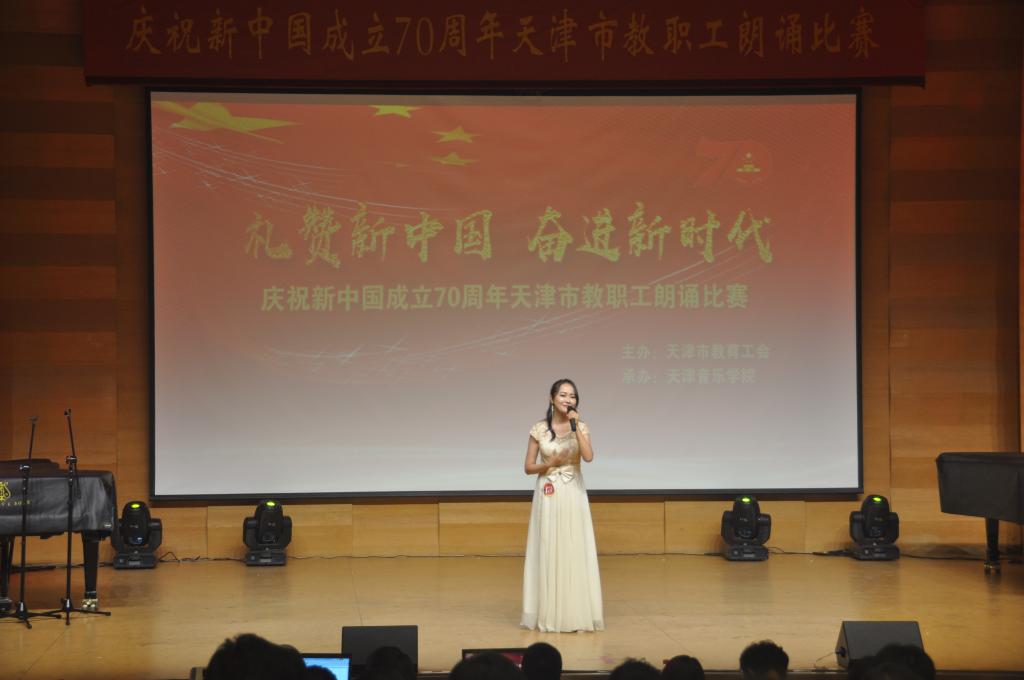 本站訊(編輯 紀雪蓮 責任編輯 楊長海 攝影 董世明)金秋九月,丹桂飄香。9月27日下午,為熱烈慶祝中華人民共和國成立70周年,由天津市教育工會主辦、天津音樂學院工會承辦的天津市教職工“禮贊新中國 奮進新時代”朗誦比賽在我院圖書信息樓報告廳舉辦。我院戲劇影視系青年教師宋曉蕓朗誦的作品《祖國在上》贏得專家評委和大眾評委的一致好評,榮獲一等獎第一名。副院長唐悅奇出席活動并為獲獎選手頒獎。