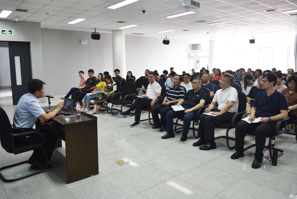 本站訊(編輯 趙珍 責任編輯 陳智杰 攝影 孫玥)9月27日下午,學院副院長唐悅奇在圖書信息樓音像廳,以《新的歷史方位與習近平新時代中國特色社會主義思想》為題,為工會離退休工作處黨支部、資產管理基建維修處黨支部、校園管理處保衛處黨支部、財務處黨支部以及鋼琴系、民樂系全體師生黨員講授“不忘初心、牢記使命”主題教育專題黨課。市委第八巡回指導組王鴻同志出席黨課。