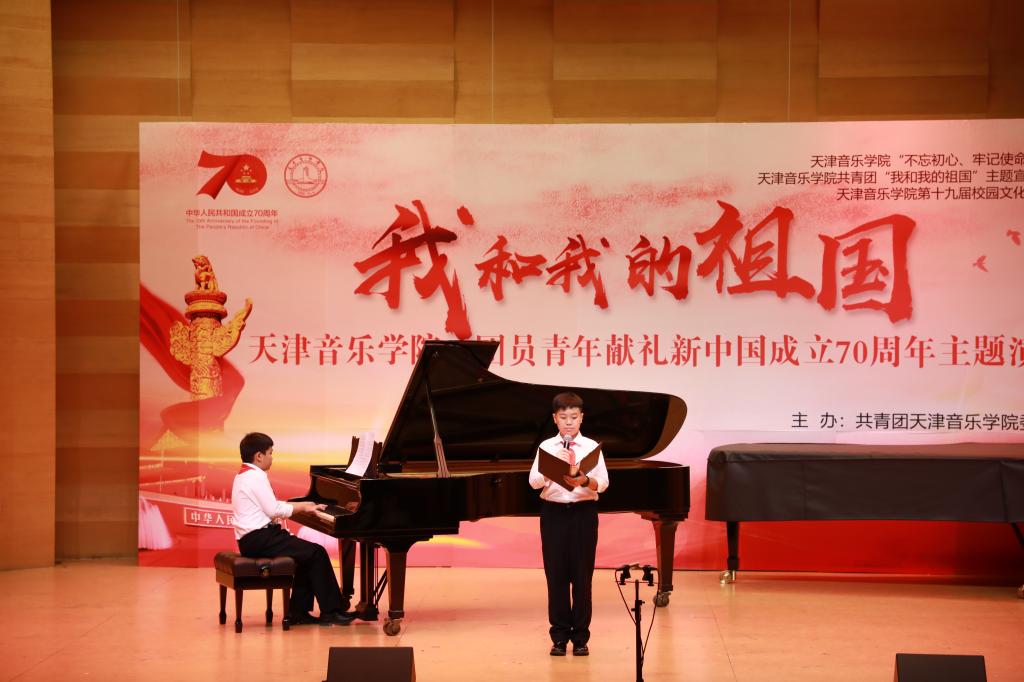 本站訊(編輯 王金灤 責(zé)任編輯 朱誠 攝影 呂笑泊 張子涵)為學(xué)習(xí)貫徹習(xí)近平新時(shí)代中國特色社會(huì)主義思想,緊密結(jié)合我院正在開展的“不忘初心、牢記使命”主題教育,依托音樂藝術(shù)院校專業(yè)特色落實(shí)“我和我的祖國”群眾性主題宣傳教育活動(dòng)要求,9月25日下午,“我和我的祖國——天音團(tuán)員青年獻(xiàn)禮新中國成立70周年主題演出”在圖書信息樓學(xué)術(shù)報(bào)告廳舉行。院黨委書記索玉華、院黨委副書記董洪霞,我院部分機(jī)關(guān)處室和相關(guān)系黨組織負(fù)責(zé)同志出席;各系、教工及附中團(tuán)總支書記和團(tuán)員青年代表,天津市“青馬工程”第二期、第三期學(xué)員,院卓越團(tuán)校第七期大學(xué)生骨干培訓(xùn)班學(xué)員三百余人參加活動(dòng)。